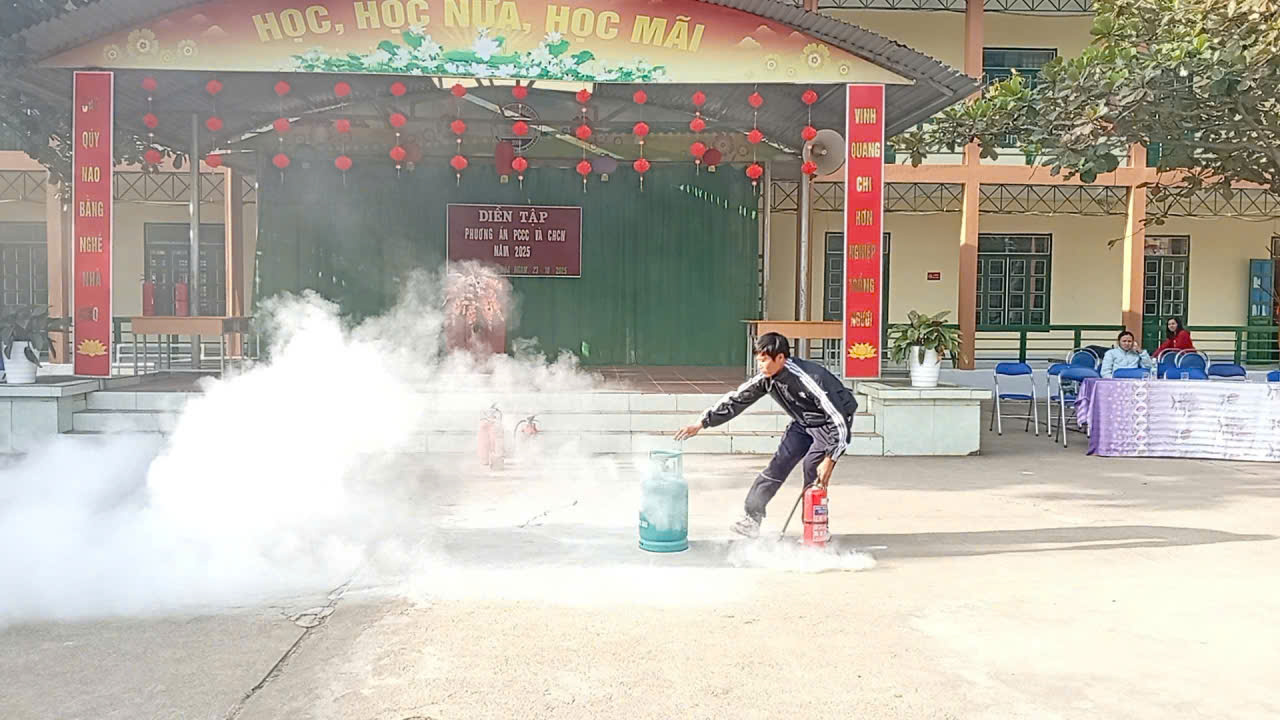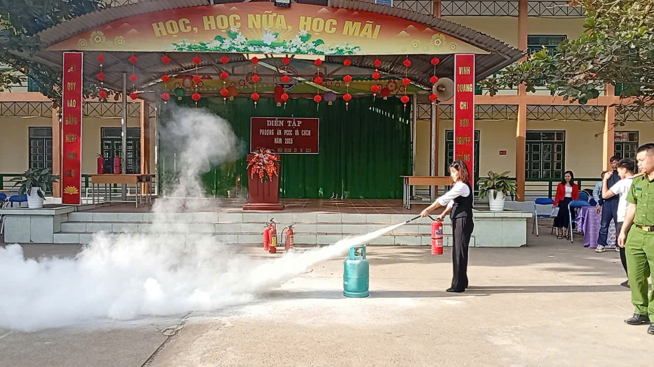 Phần trọng tâm của buổi diễn tập phương án PCCC&CNCH là thực hành chữa cháy trong tình huống xảy ra cháy nổ. Các cán bộ, giáo viên, nhân viên, học sinh nhà trường được thực hành quy trình, kĩ năng dùng bình chữa cháy để dập tắt một đám cháy cụ thể. Phần thực hành diễn ra nghiêm túc, sinh động, bám sát thực tế nhà trường. Qua tình huống thực hành giả định, kỹ năng xử lý, tinh thần bình tĩnh, khả năng phối hợp của giáo viên và học sinh được nâng cao rõ rệt.