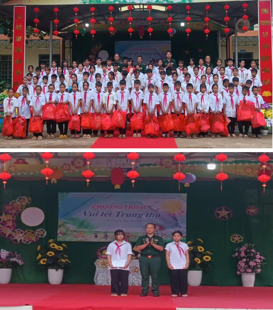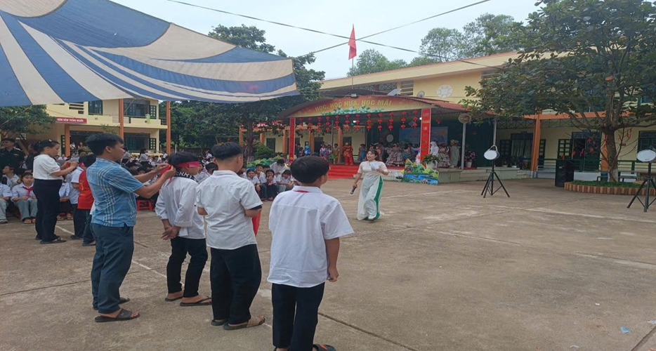 Sau phần trao quà trang trọng nhưng thấm đượm tình cảm ấm áp, chương trình chuyển sang phần hội với nhiều hoạt động văn hóa, trò chơi hấp dẫn. Mở đầu là các tiết mục văn nghệ sôi nổi, đặc sắc với những ca khúc rộn ràng của ngày Tết Trung thu do chính các bạn học sinh Trường THCS Núa Ngam biểu diễn.