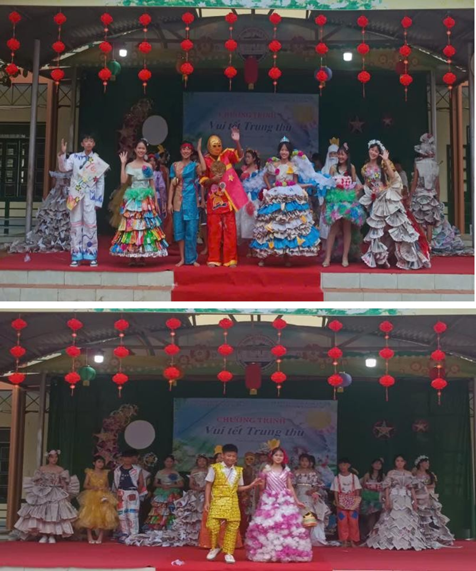 Một điểm nhấn nổi bật của chương trình năm nay là phần thi trang phục hóa trang sáng tạo. Mỗi lớp mang đến sân khấu biểu diễn những bộ trang phục độc đáo, được thiết kế từ vật liệu tái chế thân thiện với môi trường, thể hiện tinh thần bảo vệ trái đất xanh – sạch – đẹp. Các em hóa thân thành chị Hằng, chú Cuội, công chúa, hoàng tử, siêu nhân, nhân vật hoạt hình và các hình tượng trong các truyện cổ tích quen thuộc, vừa hồn nhiên, vừa gửi gắm thông điệp ý nghĩa về vấn đề bảo vệ môi trường sống hiện nay. Phần trình diễn sôi động, đầy màu sắc của các đội thi đã nhận được những tràng pháo tay không ngớt từ khán giả, làm bừng sáng sân trường trong buổi chiều Trung thu rực rỡ.