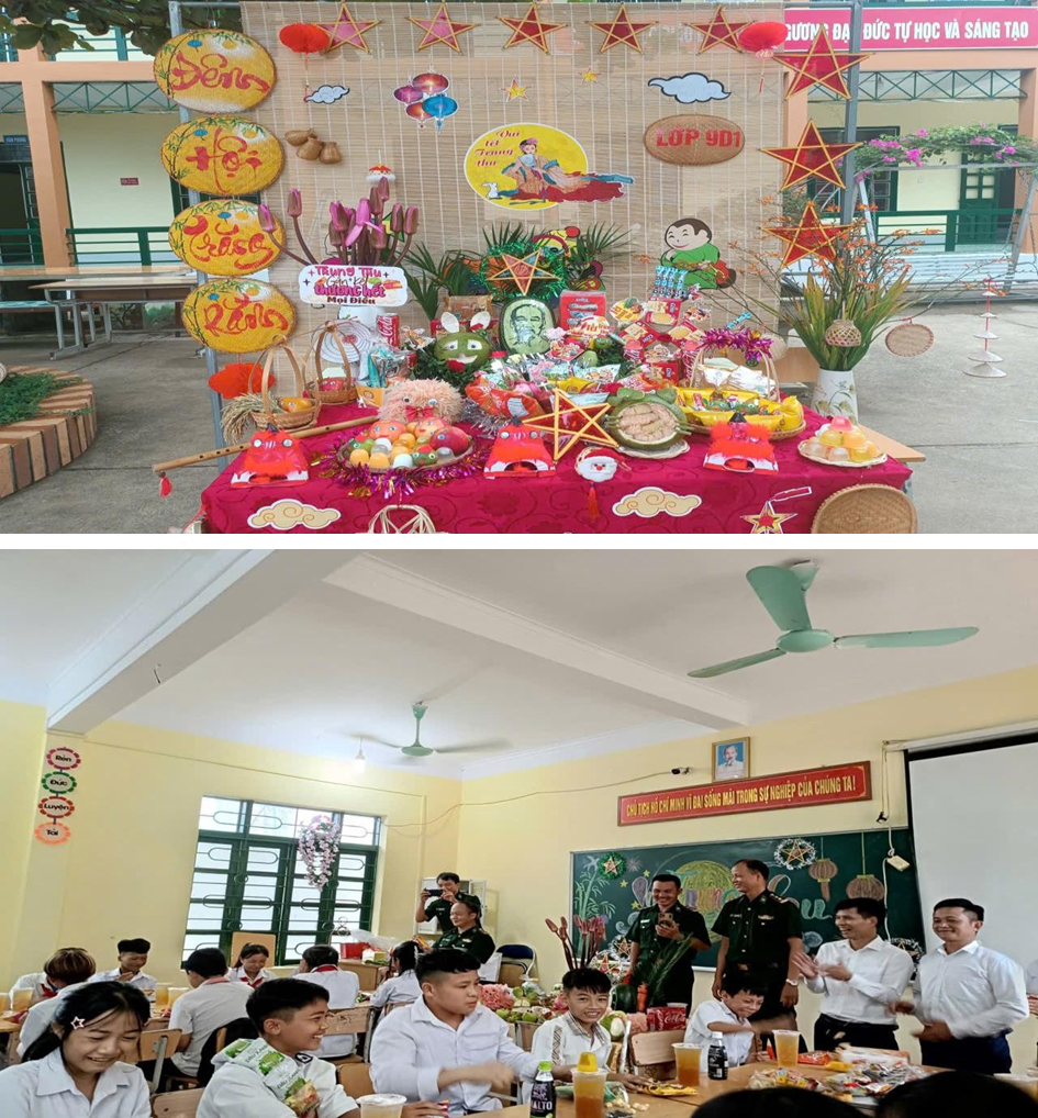 Sau phần hội sôi nổi, các lớp trở về phòng học để phá cỗ Trung thu. Trên những bàn tiệc được trang trí rực rỡ là bánh kẹo, hoa quả, nước ngọt, cùng những mâm cỗ đẹp mắt do các cô giáo, phụ huynh và học sinh tự tay chuẩn bị. Niềm vui ánh lên trong từng ánh mắt, nụ cười, gắn kết thêm tình thầy trò và bạn bè.